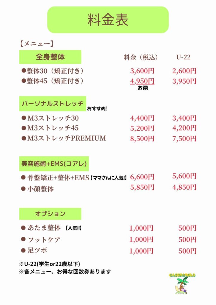 ※全身管理費=痛みの根本を追求するための身体のバランスを整える手技